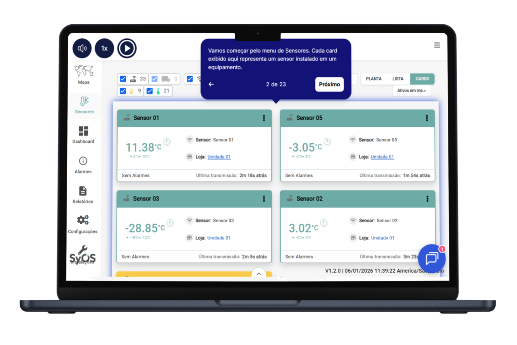 Acompanhe seus equipamentos de refrigeração, detecte falhas de temperatura e emita relatórios personalizados.